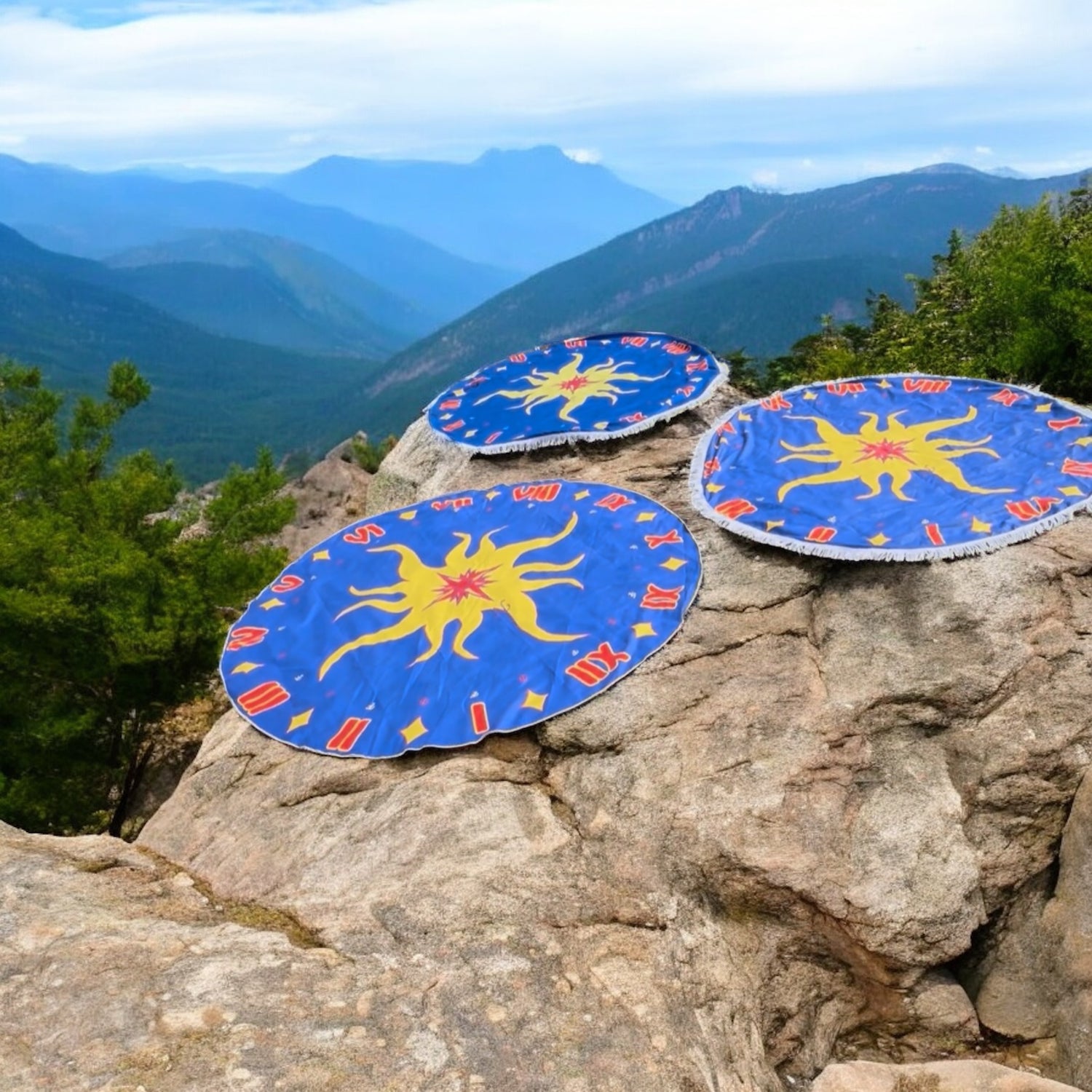 A spacious 72-inch round towel with plenty of room for you and your essentials — designed to stay flat and secure all day.
